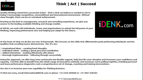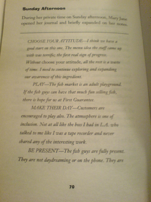 This bit from the book Fish! (which links the The Power of Positive Thought). tttt= We like the idea of focus here...being present. A challenge, especially when busy. This coming week we are working with and for a wide variety of groups: from a Trust promoting great school food to a private equity company's investment decision in central Europe; in a conference on the Government's Respect agenda to a European bank's marketing strategy; with an Audit Commission management board to a team developing a strategy for older peoples' mental health services in London; for the development of a Directorate of a major Government Department to the leadership of a key environmental consultancy. We will do our best to live these values.