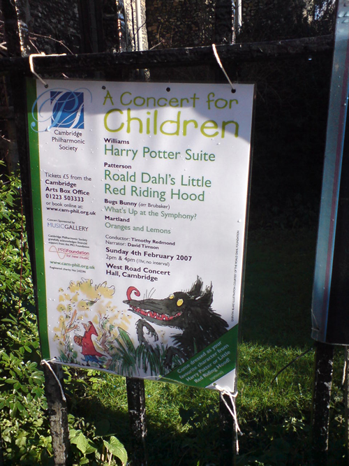 In selling anything it is possible to pay attention to the offer, to what to give, the supply. Or to look at the demand, what is wanted and how that might be shaped. This concert (advertised on railings in central Cambridge) seems to manage to use the key word - ie 'Harry Potter'. tttt = what buzzwords can you use to make what you are interested in today seem more interesting, relevant, useful, attractive to others?