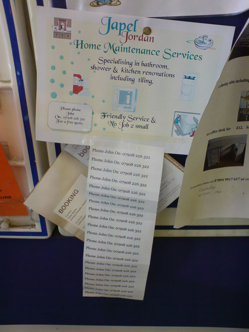 If the speed of spread of a great idea is an example of a community using its knowledge, then the adoption of this sort of novel notice in newsagents around the world is striking. We first noticed this method in a toilet (!) in Addenbrookes Hospital Cambridge a few years ago. Now we see it wherever we travel - from France to Finsbury Park. Does anyone know where it started?
