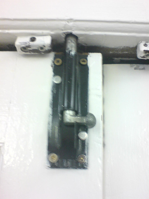 This bolt (in a room) compares really well to one on the adjacent door - the new one was shinny, but could be shaken open (by not having the return to hold the bold in the locked position). tttt = when need we to be cautious about innovations making things worse. Great design is a result of more than aesthetic - it must have a great function too.
