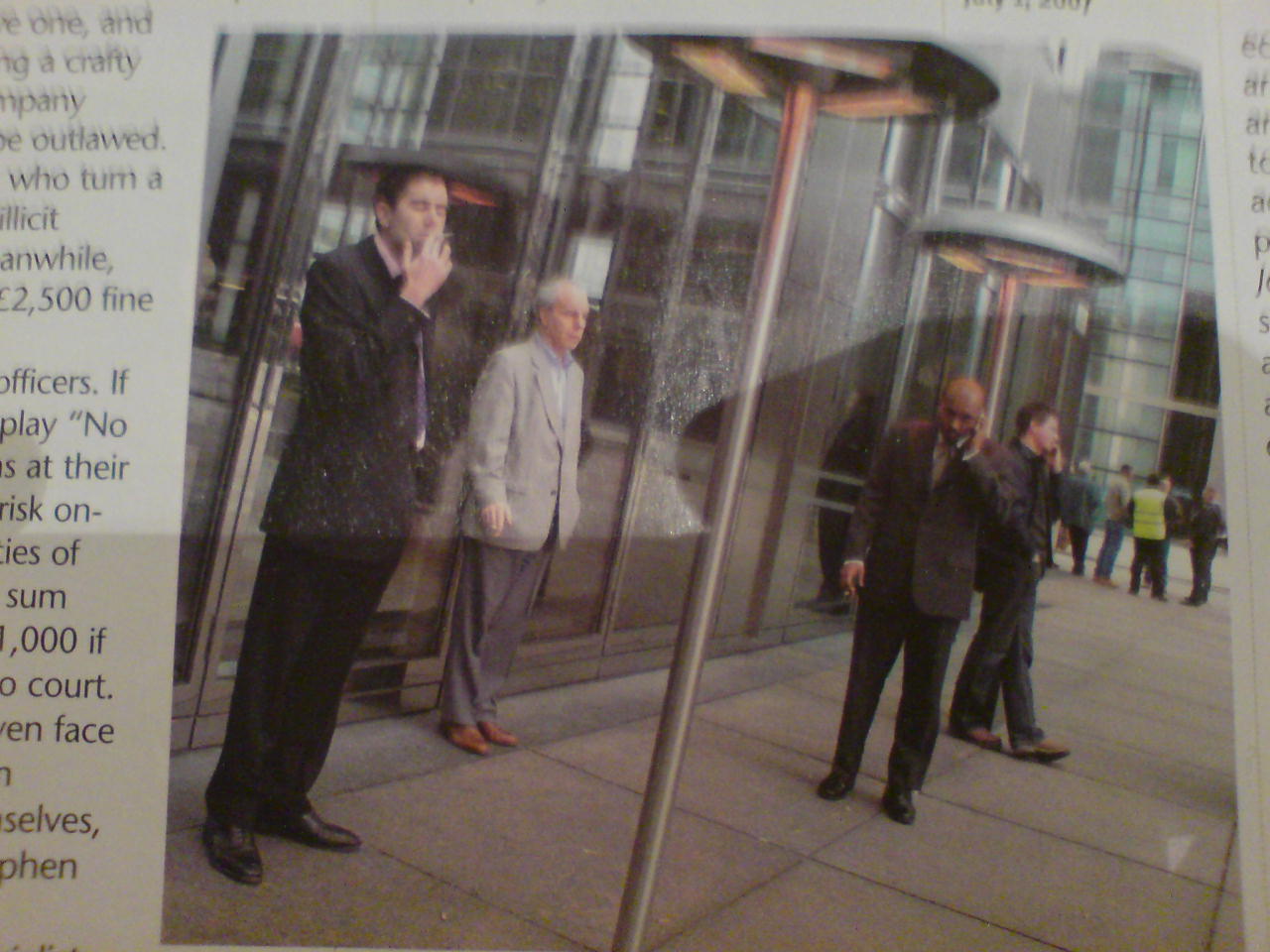 We saw this sight a few weeks ago - in Canada Square Docklands - when visiting a client. We wanted to take a photo, but felt inhibited and that we might be breaching privacy. So were delighted when we saw this in 'Director'. This outside smoking zone is clearly a news phenomenon. As well as using energy and investing in certain habits it attracts people away from the doors of the office. tttt = what incentives can you generate to get the behaviour you want?