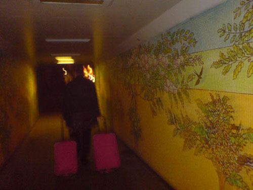 A walk in the country. A mid evening stroll with our 'Thinking Space in a Box' (or at least the two idenk pink dolly trolleys).